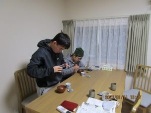 まさかぜんざいが食べられるとは思ってもいなかった寮生は,写真を撮ったり,熱い熱い!うまいうまい!と歓声を上げたり・・・大喜び。食べ終わってから塾監宅の居間でしばらく寛ぐ寮生もいて,身も心もほっこりと温まった鏡開きのひとときでした。